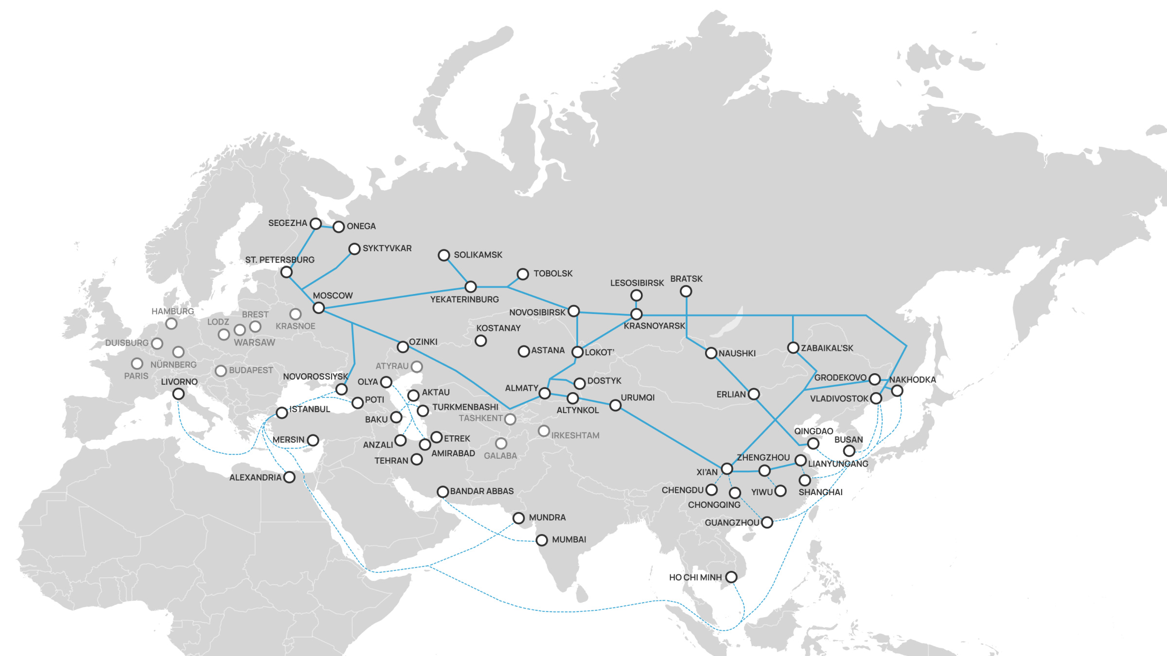 направления от Китая в Страны СНГ: Россия, Казахстан, Туркменистан, Узбекистан, Киргизстан, Таджикистан